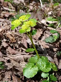 Chrysosplenium alternifolium is a species of flowering plant in the saxifrage family known as the alternate-leaved golden-saxifrage.[1] It is a mat-forming perennial of wet places that grows between 5 and 15 cm (2 and 6 in) tall. It blooms from March onward.