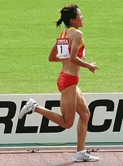 She competed at the 2008 Olympic Games, finishing the marathon in 3rd place. She placed fourth in the marathon at the 2005 World Championships in Helsinki. She won the marathon gold medal at the 2006 Asian Games in Doha, Qatar.[2] She won the silver medal in the marathon at the 2007 World Championships in Osaka, and won the bronze medal in the marathon at the 2008 Summer Olympics in Beijing, one second behind the silver medalist.[3] She finished fourth at the 2009 World Championships in Berlin.