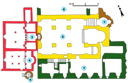 - 6 & 7 (green): Crusader halls (12th century)