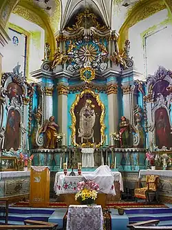 In 1771 the church was restored after fire on donations of the philanthropist Adam Chreptowicz. In that period two sacristies were added to the altar part.[1]