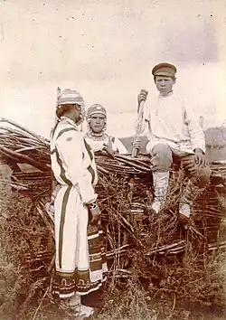 A minority of Chuvash may have been exposed to Islam as early as the Volga Bulgaria era but most of those early Chuvash likely converted during the Golden Horde period.[50] An inscription dated at 1307 indicates that some Chuvash were converted to Islam, and religious terms occur in Chuvash in the form of Tatar loanwords.[63] However, sources do not specify the practices of the Chuvash during this period. Some Chuvash who converted to Christianity following the Russian conquest converted to Islam during the 19th and early 20th century.[50] During this period, several Chuvash communities were influenced by Tatars and became Muslim. This caused some Muslim Chuvash to define themselves as Tatars but they retained their language and several Chuvash customs.[12][13]