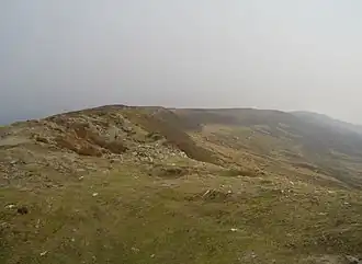 The summit is on a thin ridge and is crowned by a cairn. On the other sides of the valleys: to the west is Pen Twyn Mawr and to the east is Black Mountain.[1]