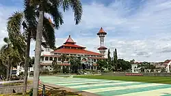 Cianjur (Sundanese: ᮎᮤᮃᮔ᮪ᮏᮥᮁ) is a town and district in the West Java province of Indonesia, and is the seat of Cianjur Regency. The district of Cianjur is located along one of the main roads between Jakarta (120 km to the northwest) and Bandung (60 km to the east). The population was 158,125 at the 2010 Census and 173,265 at the 2020 Census;[1] the official estimate as at mid 2022 was 176,368.[2] Because of its location, some of Cianjur's residents commute to work in Bandung.