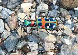 Cicindela chinensis japonica, commonly known as the Japanese tiger beetle, is a subspecies of cicindela chinensis ground beetles native to Asia.[1] It is an aggressive hunter that can reach speeds of up to 9 kilometres (5.6 mi) per hour.
