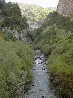 The Cinqueta (Aragonese: Zinqueta)[1] is a river in the Pyrenees tributary to the left bank of the river Cinca. It mainly runs through the Gistau valley, in Sobrarbe (Huesca). The river begins in the Viadós where the Cinqueta de la Pez meets with the Cinqueta de los Anyes Cruces, in the municipality of Gistaín. Afterwards, it travels through three places in the valley (Gistaín, San Juan de Plan and Plan), it then leaves the valley and travels towards Salinas de la Sin, where it empties out in the Cinca near Bielsa.[2]