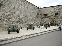 Next to the Danube-facing longitudinal wall of the Citadella, there is an open-air display of a small collection of Red Army weaponry, most of them from the Second World War. The pieces are the following (going left to right on the picture):