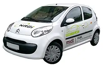 The Citroën C1 ev'ie is an electric car conversion from a standard Citroën C1 by the now defunct Electric Car Corporation. The model was first released on 30 April 2009, with a 2010 list price of £19,860 ($30,890 US) this made the C1 ev'ie a competitively priced electric car.[3][4][5]