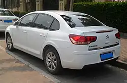 In China, a saloon version simply called Citroën C4 (or by its full name, Dongfeng Citroën C4 Sega, sometimes transcribed C4 Shijia)[14] was available from 2015 to 2019. The Citroen C4 was based on the original Citroen C-Quatre (which it quickly replaced), with the same old platforms and the same wheelbase, and both cars also share the 1.6-liter base engine. Unlike the C-Quatre, the C4 was a failure in China, with 102,597 vehicles manufactured during its whole career.[15] More 4-door C-Quatre were sold during the year 2012 alone.[16]