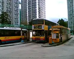 The City One bus terminal is the terminus of route 61R and 88R operated by Citybus. Citybus operates several routes from City One to the central business district in Kowloon and on the Hong Kong Island.[10] Many Kowloon Motor Bus bus routes serve City One as a hub, services to Kowloon, Hong Kong Island and other suburbs in the north New Territories are run with high frequency. Long Win Bus (Airbus) route A41 express service connects City One to the Hong Kong International Airport.[11] Green Public light buses connects City One to the rest of Sha Tin with routes to Fo Tan, Ma On Shan and Tai Wai. Red Public light buses operate to/from Mong Kok after hours.