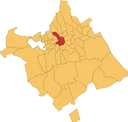 The 881.86-square-kilometre (340.49 sq mi) territory of Murcia's municipality is made up of 54 pedanías (suburban districts) and 28 barrios (city neighbourhood districts).[35] The barrios make up the 12.86-square-kilometre (4.97 sq mi) the main urban portion of the city. The historic city center is approximately 3 square kilometres (1 sq mi) of the urbanised downtown portion of Murcia.