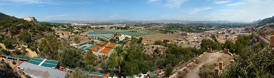 The best known and most dominant aspect of the municipal area's landscape is the orchard.[26] In addition to the orchard and urban zones, the great expanse of the municipal area is made up of different landscapes: badlands, groves of Carrasco pine trees in the precoastal mountain ranges and, towards the south, a semi-steppe region. A large natural park, the Parque Regional de Carrascoy y el Valle, lies just to the south of the city.[27]