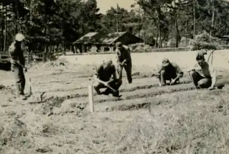 Curriculum consisted of a course in Oriental Agriculture, given at the University of California College of Agriculture at Davis.[28] and courses of instruction in Japanese agriculture at CASA. Field trips were taken to Biggs, California, to study USDA Rice Experiment Station; to Sacramento, California, to inspect the Bercut-Richards Canning Factory, which packed fruit for the Armed Forces and the F.H. Woodruff & sons Seed Company plant, packaging vegetable seeds for foreign shipment; to the Delta Area of California, south of Sacramento, to study fruit and vegetable production and the handling of Japanese labor; and to the California Agricultural. Exp. Station Orchard in Winters, California, where subtropical fruits were observed and studied on the tree. Stops were made at Vacaville to inspect the Basic Products Company, onion dehydrating plant; and at Berkeley, to study hydroponics (water culture of plants) in the U.S. Army Air Forces Laboratory.[29]
