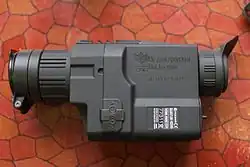 - Military equipment: camouflage nets, bulletproof vests, combat helmets, walkie-talkies, unmanned aerial vehicles (including some created by volunteers themselves),[13][14] night vision devices, thermographic cameras, sights and suppressors for the guns, artillery rangefinders, repairing of optical devices and weapons, etc.[3][9][15] Volunteer projects also include the development and introduction of electronic systems of artillery data exchange and management of gunfire,[3][16] as well as software for calculating the settings of tank shooting.[17]
