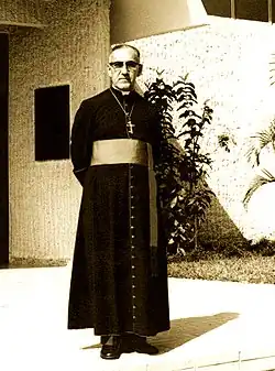 In February 1980, Archbishop Óscar Romero published an open letter to US President Jimmy Carter in which he pleaded with him to suspend the United States' ongoing program of military aid to the Salvadoran regime. He advised Carter that "Political power is in the hands of the armed forces. They know only how to repress the people and defend the interests of the Salvadoran oligarchy." Romero warned that US support would only "sharpen the injustice and repression against the organizations of the people which repeatedly have been struggling to gain respect for their fundamental human rights".[77] On 24 March 1980, the Archbishop was assassinated while celebrating Mass, the day after he called upon Salvadoran soldiers and security force members to not follow their orders to kill Salvadoran civilians. President Carter stated this was a "shocking and unconscionable act".[78] At his funeral a week later, government-sponsored snipers in the National Palace and on the periphery of the Gerardo Barrios Plaza were responsible for the shooting of 42 mourners.[79]