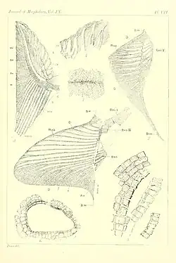 - ^ a b c d e f g h i j k l m n o p q r Dean, Bashford (1894). "Contributions to the Morphology of Cladoselache (Cladodus)". Journal of Morphology. 9: 87–114. Bibcode:1894JMorp...9...87D. doi:10.1002/jmor.1050090103. S2CID 84156816.