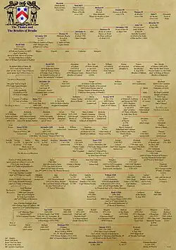 - of Norman origin;[7] the French Dictionnaire de la Noblesse refers to a 13th-century Knight named Guy de Brothie, who married a daughter of the Knight Aimery de Gain from Limousin.[8]