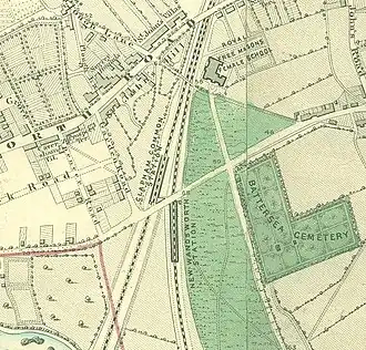Clapham Common was a railway station in Clapham formerly located between Vauxhall and Wimbledon stations.[1] The station was opened by the London and South Western Railway on the 21 May 1838 as Wandsworth when the company opened its line from Nine Elms to Woking. Renamed in 1846, it closed on 2 March 1863 when Clapham Junction was opened in its place.[1][2]