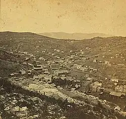 In the Denver area, Brown settled in nearby Auraria where she worked at the City Bakery. She was one of the founding members of the nondenominational Union Sunday school through her affiliation with two Methodist missionary ministers. Following the tide of miners heading into the mountains, Brown set up the first laundry in Gilpin County in Gregory Gulch, now called Central City, Colorado. She also worked as a midwife, cook[6] and nursemaid. Brown's income grew substantially when she expanded her laundry business after taking a partner.[5] She invested her earnings in mine claims and land and within several years had accumulated $10,000 in savings[6] and reportedly owned 16 lots in Denver, 7 houses in Central City, and property and mines in Boulder, Georgetown, and Idaho Springs.[7]