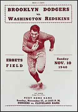 Clarence McKay "Ace" Parker (May 17, 1912 – November 6, 2013) was an American football and baseball player and coach. He played professional football as a quarterback, tailback and safety in the National Football League (NFL) for the Brooklyn Dodgers (1937–1941) and the Boston Yanks (1945) and in the All-America Football Conference (AAFC) for the New York Yankees. He was an All-American selection at Duke University in 1936. Parker also played in the Major League Baseball (MLB) during 1936 and 1937 with the Philadelphia Athletics.[1] He served as the head baseball coach at Duke from 1953 to 1966. Parker was inducted into the College Football Hall of Fame as a player in 1955 and the Pro Football Hall of Fame in 1972.