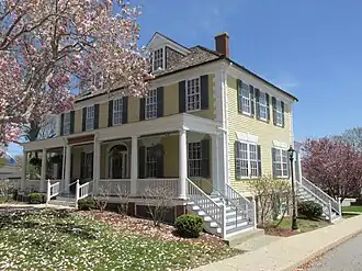 Concurrent to the addition of Eleazer B. Homer, the architects began receiving commissions for more civic structures. The first of these was the Benjamin Church Home for Aged Men on Hope Street in Bristol.[26] The building was commissioned by the family of Samuel W. Church, a draftsman with the firm who would become a partner upon Clarke's retirement. Built to a residential scale, it is considered a "very pure example" of Colonial Revival architecture.