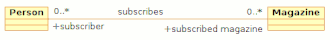 An association can be named, and the ends of an association can be adorned with role names, aggregation indicators, multiplicity, visibility, navigability and other properties. The dot notation for example allows to represent with a little dot on the side of one class that the association end is owned by the other side.[8]
