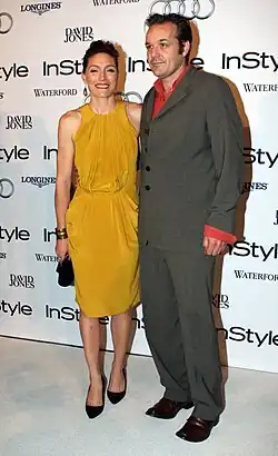 Karvan first met Jeremy Sparks, an Australian film set constructor and later an engineer, in the late 1980s.[75] They became domestic partners in 1995 and have two children.[10][75] She is also stepmother to pop singer Holiday Sidewinder, Sparks' daughter from a previous relationship with Australian actress Lo Carmen.[76] Karvan described Sparks, "When we got together he was a single father, and the way he navigated that really impressed me. He was a great dad then, and now. He's physical and consistent and funny."[75] Karvan (cameo role) and Carmen (as Meryl) had both appeared in a film, The Nostradamus Kid (1993), which was shot in late 1991 and early 1992.[77] Both had previously acted in the TV series, The Last Resort (1988).[78][79]