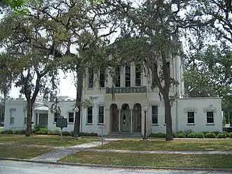 The Clay County Historic Courthouse is a historic county courthouse in Green Cove Springs, Florida. The two-story brick building was built in 1889 and used until 1973. A historical marker commemorates its history.[2] It is located at 915 Walnut Street as part of the county's Historic Triangle which includes the Clay County History Museum, Railroad Depot Display, Old County Jail and Archives Center. On June 20, 1975, it was added to the U.S. National Register of Historic Places. It was designed by Ellis and McClure. This historic location is home to Clay County Teen Court programs and is a venue for events such as mock trials, plays, swearing-in ceremonies, photo shoots and tours. The modern, fully operational Clay County Courthouse is a separate facility located at 825 North Orange Avenue in Green Cove Springs. Employees of the Clay County Clerk's Office (Clay County Clerk of Court Tara S. Green) oversee the operations of both locations' offices.