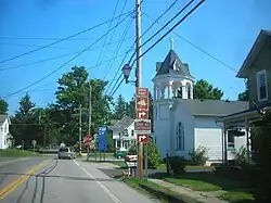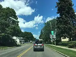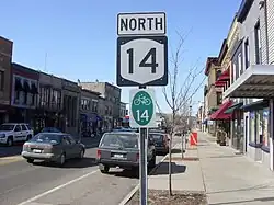 NY 14 continues through the rural creek valley to the village of Montour Falls, where the Catharine Creek valley widens to hold the nearby Seneca Lake. In Montour Falls, NY 14 intersects NY 224, a highway leading to the far southeastern reaches of Schuyler County. The route continues on to the neighboring village of Watkins Glen, where it runs concurrently with NY 414 through much of the village. The part of this stretch between NY 329 and NY 409 was part of the original Watkins Glen Grand Prix race course.[5] The main entrance to Watkins Glen State Park is also located within this stretch, and the park's 400-foot-deep gorge is visible from the highway. In Watkins Glen, NY 14 is known as Franklin Street and serves as the eastern terminus for both NY 329 and NY 409. The overlap with NY 414 ends in the village center at 4th Street, the same junction where NY 409 comes to an end.