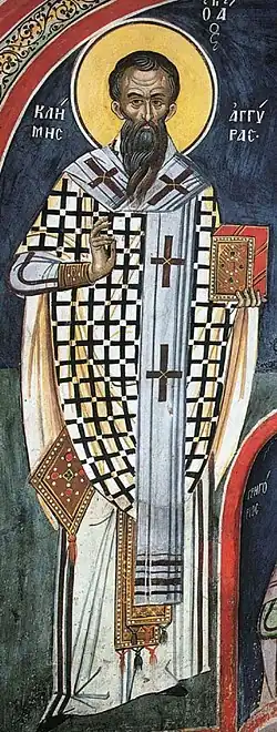 Clement of Ancyra (Greek: Κλήμης; c. 258 – 312) was a bishop who served during the rule of Roman emperor Diocletian. He was arrested by Roman authorities and tried by Diocletian. Emperor Diocletian attempted to convert Clement to Paganism but Clement refused and withstood tremendous torture. Clement was eventually beheaded by a Roman soldier whilst he was celebrating the Divine Liturgy in the year 312.[1] He is venerated on 23 January according to the Gregorian calendar and on 5 February according to the civil or Gregorian calendar equivalent of 23 January in the Julian calendar by Orthodox Christians keeping this calendar, which includes all of them in some countries and traditionalist Orthodox Christians including Genuine or Authentic Orthodox Christians, True Orthodox Christians and Catacomb Orthodox Christians everywhere, together with his disciple Agathangelus of Rome.