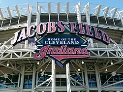 The Cleveland Guardians are an American professional baseball team based in Cleveland. The Guardians compete in Major League Baseball (MLB) as a member club of the American League (AL) Central Division. Since 1994, the team has played its home games at Progressive Field (originally known as Jacobs Field after the team's then-owner). Since their establishment as a Major League franchise in 1901, the team has won 12 Central Division titles, six American League pennants, and two World Series championships (in 1920 and 1948). The team's World Series championship drought since 1948 is the longest active among all 30 current Major League teams.[2][3] The team's name references the Guardians of Traffic, eight monolithic 1932 Art Deco sculptures by Henry Hering on the city's Hope Memorial Bridge,[4] which is adjacent to Progressive Field.[5][6] The team's mascot is named "Slider".[7] The team's spring training facility is at Goodyear Ballpark in Goodyear, Arizona.[8]
