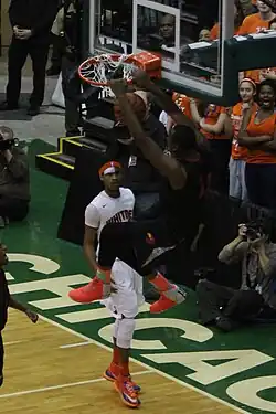 Okafor and Alexander vied for a host of local and national player of the year awards,[107] with each winning multiple national player of the year awards. Young and Curie were both in the Marist Class 4A sectional in the 2014 IHSA playoffs and could have met again in the round of sixteen on March 14 if they had both won three regional contests.[108] Despite forfeiting all wins in CPL games, Curie remained eligible to compete in the IHSA playoffs due to differences in eligibility rules.[104][106] On March 4, Curie lost their opening IHSA playoff game to 11–11 DuSable High School by an 88–85 margin in overtime. It marked Curies first loss of the season on the court with Alexander in the lineup. Alexander posted 25 points, 15 rebounds, and 8 blocks despite fouling out in the final minute of regulation time.[109] Curie trailed 13–2 early and led 47–32 midway through the third quarter.[110] Curie starters Josh and Joseph Stamps were ineligible for IHSA play as was Malik Washington.[111]