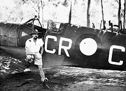 Clive Robertson Caldwell, DSO, DFC & Bar (28 July 1911 – 5 August 1994) was the leading Australian air ace of World War II. He is officially credited with shooting down 28.5 enemy aircraft in over 300 operational sorties, including an ace in a day. In addition to his official score, he has been ascribed six probables and 15 damaged.[1][2] Caldwell flew Curtiss P-40 Tomahawks and Kittyhawks in the North African Campaign and Supermarine Spitfires in the South West Pacific Theatre. He was the highest-scoring P-40 pilot from any air force and the highest-scoring Allied pilot in North Africa.[3] Caldwell also commanded a Royal Air Force (RAF) squadron and two Royal Australian Air Force (RAAF) wings. His military service ended in controversy, when he resigned in protest at the misuse of Australian First Tactical Air Force's fighter units and was later court martialed and convicted for trading liquor.