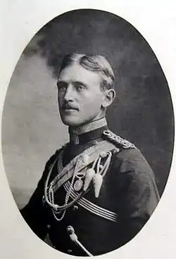 Dixon attended Rugby School and Sandhurst before embarking on a military career when he was commissioned a second lieutenant in the 16th Lancers on 8 October 1890. He was promoted to lieutenant on 27 January 1893, and to captain on 28 January 1899.[3] During the early part of the Second Boer War 1899-1900 he was aide-de-camp to Sir George White. He was appointed adjutant to his regiment on 22 March 1900, and served as such for the rest of the war, during which he was promoted a brevet major on 29 November 1900.[4] Dixon resigned from the army in August 1902 following the end of the war,[5] and returned home on the SS Scot in September 1902.[6] He re-enlisted after the outbreak of the First World War, and was killed at the First Battle of Ypres shortly after receiving the substantive promotion to Major.