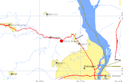 ![]() Cloie Branch (the red dot indicates the confluence between the creek and the Little Maquoketa River) (USGS) | |