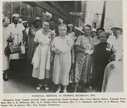 The NACW raised more than $5 million in war bonds during World War I.[75] The Woman's Club of Norfolk wrote letters and sent care packages to the segregated black units sent to fight overseas.[76] During the Great Depression, black women's clubs began to move towards "structural change and electoral politics".[77] The National Council of Negro Women (NCNW) became a dominant group in the women's club movement in African-American circles.[77] After World War II, working class and poor black women took the place of upper-class black women in organizing communities.[78]