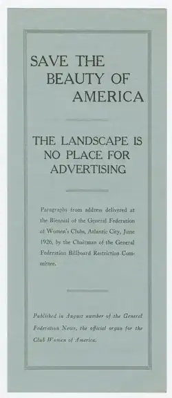 Publication of Club Women of America on landscaping and advertising, c. 1926.