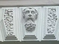 - Doddington Hall, Cheshire, The country house was designed by Samuel Wyatt. An outer double staircase leads up to a doorway flanked by columns and under a blind arch containing a Coade stone medallion containing a sign of the Zodiac. There are similar medallions over the first floor windows in the outer bays.[50][51][52](53°00′53″N 2°26′03″W / 53.0148°N 2.4342°W)