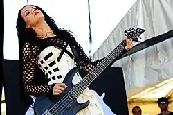 Coal Chamber embarked on headlining and festival tours in support of the album.[20] That year, the band took part in Insane Clown Posse's Amazing Jeckel Brothers Tour, along with Biohazard, Krayzie Bone, Twiztid, and Mindless Self Indulgence.[21] While Biohazard, Mindless Self Indulgence, Krayzie Bone, and Twiztid were well received by audiences,[21] Coal Chamber was not. ICP fans were not purchasing tickets, as they did not like the band.[21] For the three shows that Coal Chamber played, there were multiple ticket refunds.[21] ICP member Violent J and his brother, Rob, made the decision to eliminate Coal Chamber from the tour. After doing so, there were no ticket refunds for the remaining tour dates.[21] ICP claimed that Coal Chamber had been removed due to equipment problems but later revealed the true reason for their actions on The Howard Stern Show, on August 19, 1999.[21] On air, Osbourne, who also appeared as a guest, informed Bruce and Utsler that Coal Chamber filed a lawsuit for breach of contract.[22] Between August and December 1999, Nadja Peulen filled in on bass while Rayna Foss went on maternity leave.[23][24] Foss returned to the band in January 2000.[25]