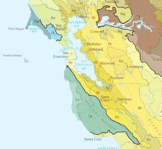 The Point Reyes/Farallon Islands ecoregion includes the Point Reyes Peninsula, Bodega Head and the sand spit at the north end of Bodega Bay, and the offshore Farallon Islands. The maritime climate is temperate and humid, with frequent fog. There are granitic rocks along with Pliocene and Miocene sandstone and mudstone, and Quaternary sands. Soil temperature regimes are mostly isomesic, with some mesic. Soil moisture regimes are mostly ustic. Common vegetation includes Douglas-fir, tanoak, Bishop pine, coast live oak, Pacific reedgrass, and coyote brush. A few redwoods occur. Most of the streams are small, and dry by the end of the summer. The Farallon Islands, about 20 miles southwest of Point Reyes, are a group of small granitic islands providing important habitat for seabirds, seals, and sea lions.[6]