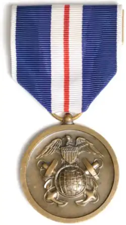 The Coast and Geodetic Survey Distinguished Service Medal was awarded to any member of the U.S. Coast and Geodetic Survey who distinguished himself by outstanding conduct or service in the line of duty under the jurisdiction of the United States Secretary of Commerce between 8 September 1939 and 28 April 1952. Any commissioned officer of the United States Coast and Geodetic Survey Corps and any ship's officer or member of the crew of any Coast and Geodetic Survey ship was eligible for the Coast and Geodetic Survey Distinguished Service Medal.[1][2][3][5] Coast and Geodetic Survey personnel were not eligible for the medal for service they performed during periods in which they were under other jurisdiction, such as that of the United States Department of War or the United States Department of the Navy.[2]