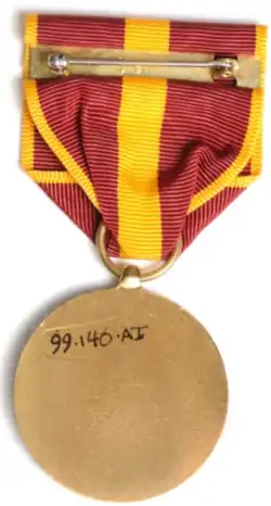 The Coast and Geodetic Survey Good Conduct Medal was awarded to any member of the crew of a Coast and Geodetic Survey vessel for exemplary behavior, efficiency, and fidelity in the line of duty under the jurisdiction of the United States Secretary of Commerce between 8 September 1939 and 28 April 1952.[1][2] Coast and Geodetic Survey personnel were not eligible for the medal for service they performed during periods in which they were under other jurisdiction, such as that of the United States Department of War or the United States Department of the Navy.[1]