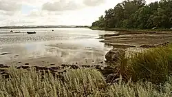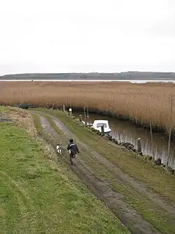To the northwest the Djursland peninsula borders Randers Fjord. This narrow, 30 kilometre long wetland, cuts into mainland Jutland. The fjord is the outlet for Denmark's longest river, Gudenå.[1] The fresh water from the river mixes with salt water in the fjord. Along the fjord meadows and swamps often go directly into the fjord without any beaches. The bottom along the coastline consists of claylike silt, and one has to go quite far out to reach any significant depth in many places. These conditions are not favourable for beach life. In many places banks of reeds reach all the way into the fjord, making it impossible to walk along the coast. This lack of accessibility is characteristic for the north eastern borders of the Djursland peninsula in Randers Fjord.[4]