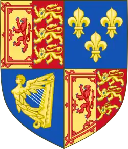 ![]() | 1707–1714 | When the Acts of Union 1707 created the Kingdom of Great Britain (1707–1800), the Royal Arms of England and Scotland were impaled and moved to the first and fourth quarters, with the royal arms of France in the second quarter and the harp of Ireland in the third.[1] |