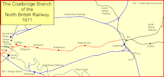 From 1 September 1872 through passenger trains from Ayr to Edinburgh via Bellgrove, Coatbridge and Bathgate were inaugurated.[3] Several mineral lines radiated from the Coatbridge line to coal pits close to the line.