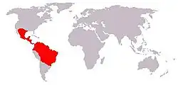 Overall, coatis are widespread, occupying habitats ranging from hot and arid areas to humid Amazonian rainforests or even cold Andean mountain slopes, including grasslands and bushy areas. Their geographical range extends from the southwestern U.S. (southern Arizona, New Mexico, and Texas) through northern Uruguay.[9] Around 10 coatis are thought to have formed a breeding population in Cumbria, UK.[10]
