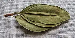 Fresh samples of the dried leaves, uncurled, are a deep green colour on the upper surface, and a grey-green on the lower surface, and have a strong tea-like aroma. When chewed, they produce a pleasurable numbness in the mouth, and have a pleasant, pungent taste. They are traditionally chewed with slaked lime or some other reagent such as bicarbonate of soda to increase the release of the active ingredients from the leaf. Older species have a camphoraceous smell and a brownish color, and lack the pungent taste.[11][69] See also Erythroxylum coca, and Erythroxylum novogranatense spp.
