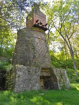 Codorus Forge and Furnace Historic District, also known as Hellem (Hellam) Forge, is a historic iron forge and national historic district located at Hellam Township in York County, Pennsylvania. The district includes four contributing buildings, one contributing site, and one contributing structure. The contributing buildings are the iron furnace (c. 1836), charcoal house (c. 1836), ruins of works' houses (c. 1836), ironmaster's house and furnace office (c. 1780), privy, forge (1800), and ruins of unknown structures. The furnace measures approximately 30 feet square at the base and 12 feet high. The ironmaster's house is a 2 1/2-story, stuccoed stone building, nine bays wide and one room deep. The Hellem (Hellam) Forge was first established in 1765.[2]