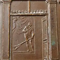 Peter Turnerelli (1774–1839) was responsible for the fine plaster mural of Coila looking down upon the poet at the plough whilst sheltering him with her cloak that adorns the back of the Dumfries Mausoleum.[11]