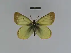 Colias nastes, the Labrador sulphur, is a butterfly in the family Pieridae. In Europe, it is found in the north of Norway and Sweden and on rare occasions in northern Finland. It is also found in North America, specifically in Alaska, Canada, and the Rocky Mountains, Washington, Montana and on Greenland. In Asia, it is found in the Altai Mountains, the border regions of Russia, China, Mongolia, Kazakhstan, the Sayan Mountains, the north of Siberia, and in the Chukotka Autonomous Okrug.
