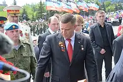 The Russian military then formed the government in the city under the leadership of former People's Deputy Yevgeny Balitsky, Melitopol city council members Oleksandr Falk and Galina Danilchenko (who formally headed the city's "committee of people's elected officials").[20][21] In Enerhodar, a parallel government body, the "Public Council of Self-Organization of the City," was created under the leadership of city council member Andriy Shevchyk. In Berdiansk, a representative of the Union of Left Forces party, Oleksandr Saulenko, took on the "temporary duties of the mayor" and declared himself the "People's Mayor" of Berdiansk.[11] A criminal case was initiated against Volodymyr Rykun, the head of Mykhailo community of Zaporizhzhia region, who stated that he went to the negotiations with the Russian military.[22][23]